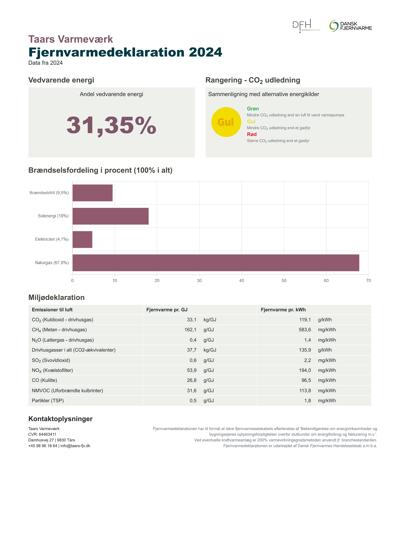 Fjernvarmedeklaration 2024 Taars Varmeværk